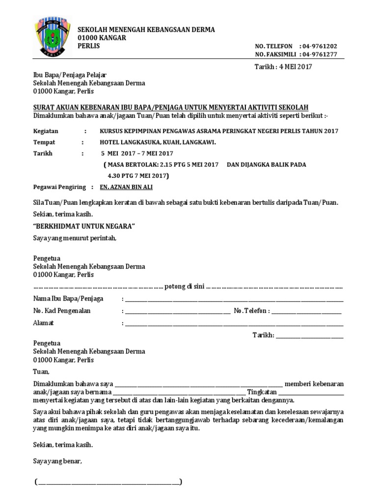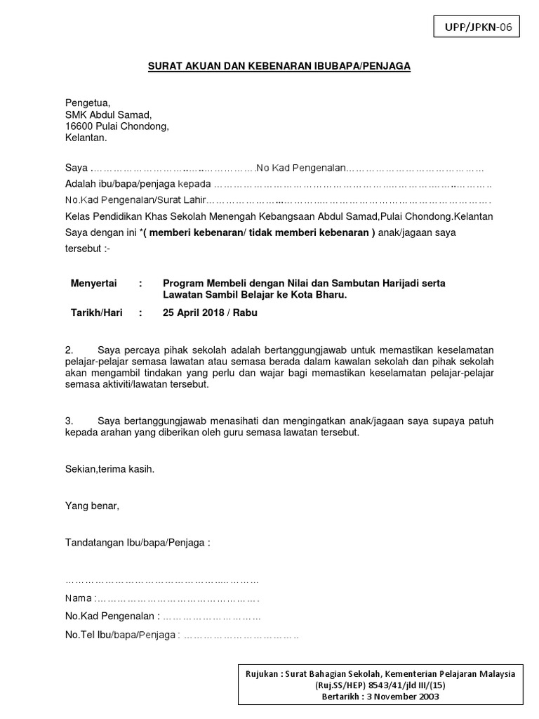 Download Free PDF View PDF. Download Free PDF View PDF. Format surat kebenaran ibubapa bagi aktiviti sekolah adalah seperti berikut.
